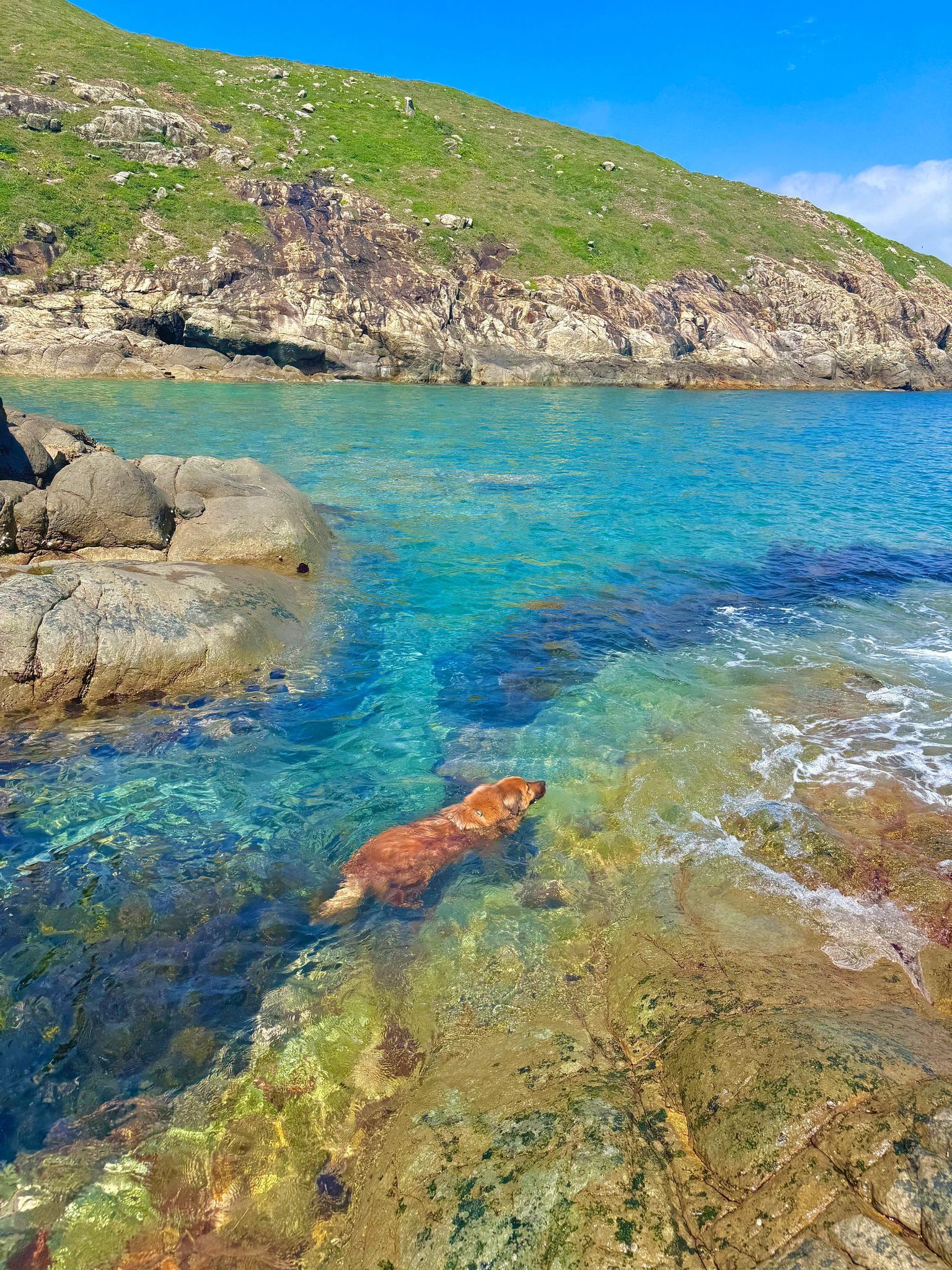 Ham Tin Wan ferry fleet offers amazing pet-friendly speedboats! Previously, taking my dog to Ham Tin Wan involved a grueling hike that left my legs aching, but this time it's a direct 30-minute speedboat ride – a lifesaver for lazy people! 🚤 No strenuous hiking required. The best part was how incredibly friendly the captain was to the furry friends; he didn't charge extra and even took us for a close-up look at the massive rock formations of Po Pin Chau and Tiao Chung Chau.
